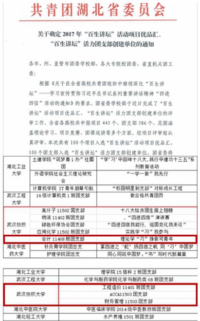 学院课外文化活动丰富多彩,第二课堂硕果累累。四项“百生讲坛”项目获批省级立项,荣获“我看党的十八大以来的新变化”配乐朗诵大赛一等奖,荣获第六届武汉纺织大学健身操大赛一等奖等。