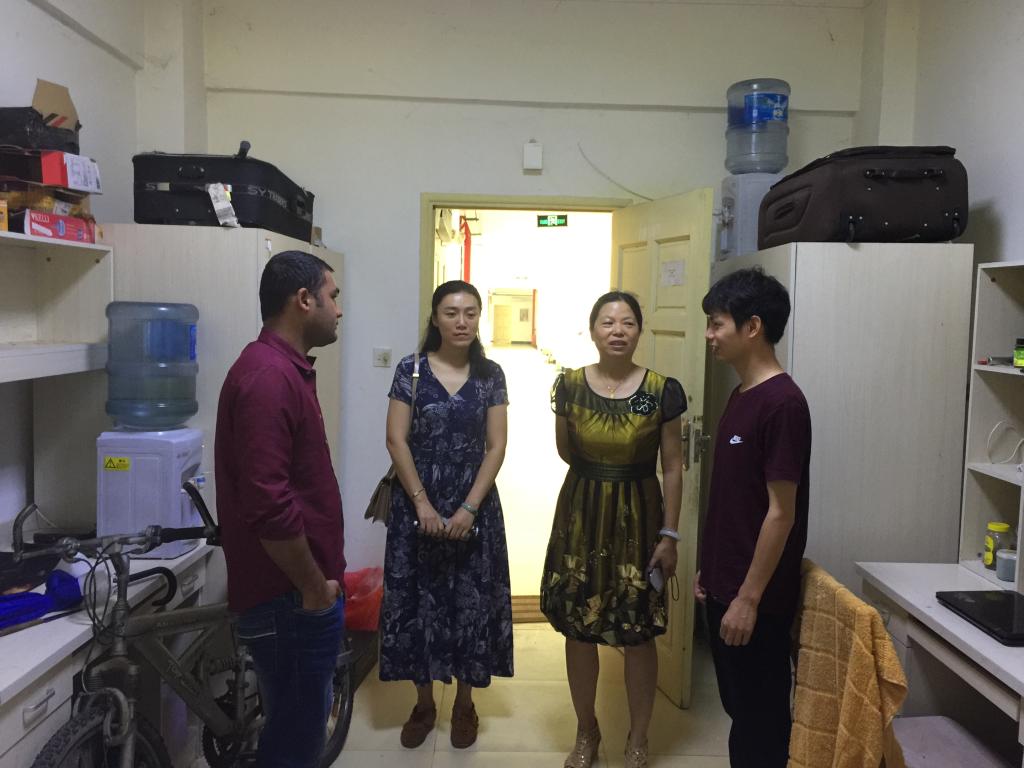 在检查完留学生宿舍卫生及安全隐患情况后,学院专门就宿舍是否容留其他外籍人士、是否使用大功率电器等问题进行详细了解。最后,樊书记还强调,留学生们参加穆斯林宗教习活动时,应遵守中国法律法规,不要参与非法集会;外出或遇到突发紧急情况,应及时和班主任沟通报备。