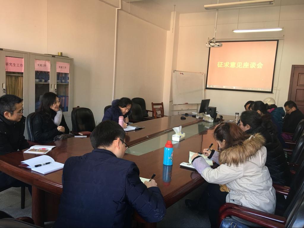 为开好2017年度学院党委领导班子民主生活会,科学谋划2018年学院工作, 2018年1月11日上午,会计学院在阳光校区07-406会议室召开领导班子民主生活会征求意见座谈会。学院党支部书记代表、青年教师代表及民主党派代表人士参加了会议,会议由工会主席简东平主持。