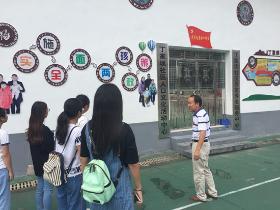 活动期间,丁家坝社区党总支宣传委员、民政专干朱国清为团队成员详细介绍社区基本情况,并谈到社区在刚成立之初,各项基础设施建设尚未完善。近年来,随着国家对基层社区工作的愈发重视,社区在基层组织建设、基础设施建设和文化宣传建设等多方面不断建设与发展,先后建设了多处基础服务设施,设立网格管理站、计生服务站、综治维稳站、卫生服务站、社会保障站、警务室、党员群众服务中心、便民服务中心、党员活动中心、文化活动中心等。为社区居民提供救助保障、医疗保健、居民教育、社会治安、劳保就业等服务。充分发挥社区在社会工作、社会组织中基础平台作用。