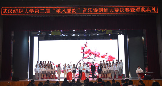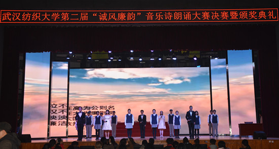 为进一步加强反腐倡廉教育,扎实推进校园廉政文化建设,积极营造爱党、敬廉、崇廉的良好氛围。12月12日,由校纪委主办,会计学院学生会、研究生支部与校青廉社承办的武汉纺织大学第二届“诚风廉韵”音乐诗朗诵大赛决赛在大学生活动中心隆重举行。十二个学院经过前期的初赛、复赛等环节最终突围顺利进入决赛。