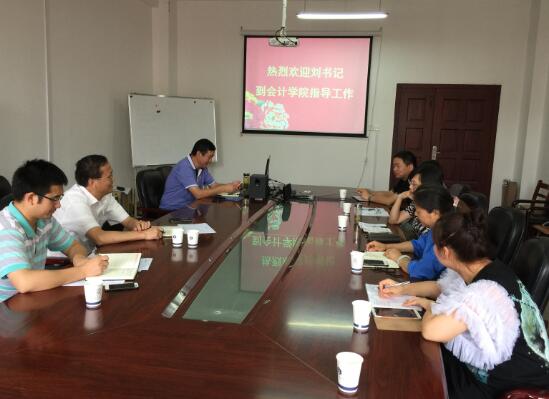 刘书记认真听取了会计学院的工作汇报,对学院取得的成绩表示肯定,对学院反映的问题作了认真记录。他指出,会计学院在招生、教育、培养等各个环节取得了较大成绩,为学校赢得了荣誉。他希望会计学院秉持一贯的发展理念,坚持人才培养的中心地位不动摇,把人才培养作为学院工作的第一目标、第一要务,积极探索创新教学工作,推进专业综合改革。刘书记还对人才引进、科研激励、学生管理和实验室建设等方面存在的困难给出了积极的解决方案。