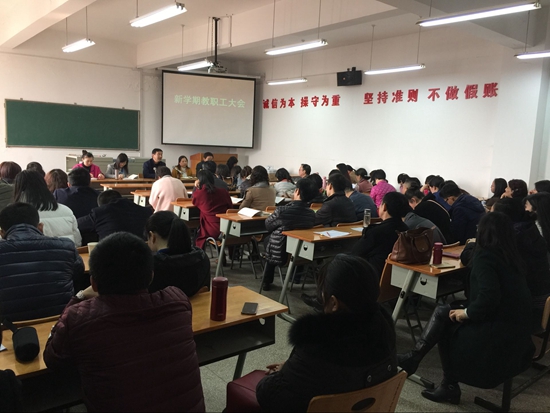 杜院长总结了去年学院的整体工作情况,并结合省委巡视整改工作精神和“双一流”建设工作会议精神,对学院新学期的工作做了具体部署。杜院长强调,要明确岗位职责,严格按照学校和学院的工作要求和目标,高度自觉、主动开展工作,特别是对提高教学质量,提示服务水平作出具体要求,号召学院全体教职工认清形势、统一思想、团结一致、“撸起袖子加油干”推动学院教学改革,力争人才培养、学科建设上层次、显水平。