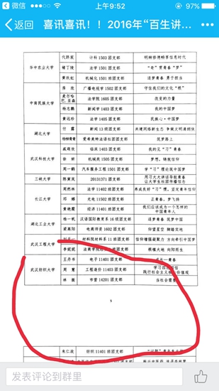 据悉,2016年“百生讲坛”活动于5月份启动,是由共青团湖北省委在全省高校共青团组织中开展的“百生讲坛”——学习宣传贯彻习近平总书记系列重要讲话精神“四进四信”活动。我院周慧同学通过学院、学校、团省委层层选拔,在活动中取得了优异成绩,最终获评了2016年“百生讲坛”省级优秀主讲人荣誉称号。