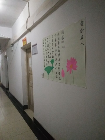 前期制作精美的画板、收集展现我院学生风采的照片,后期将收集的材料制作成展板,并在9B宿舍楼一楼建成文化长廊。宿舍文化长廊作品内容包括会计学院学生组织建设、体育文艺建设、安全文明宿舍建设、心理健康教育、志愿服务活动、会计发展史、会计名人等内容。