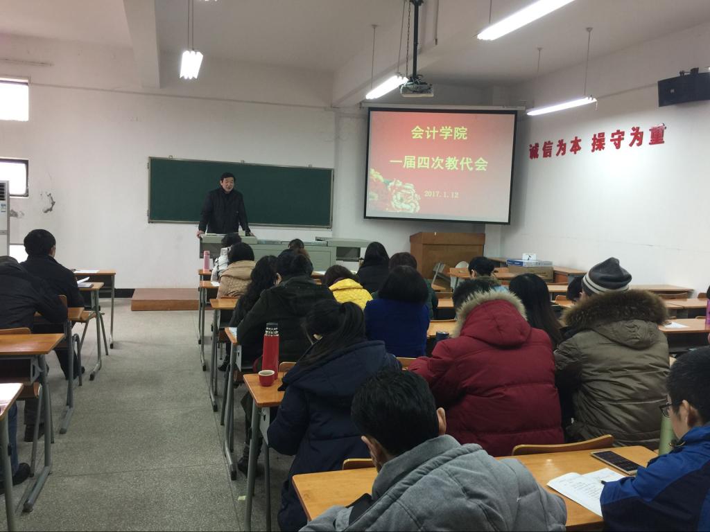 1月12日上午,会计学院在阳光校区7号教学楼402会议室召开第一届四次教代会,学院教代会全体代表参加会议。会议由院党委副书记熊敏主持。