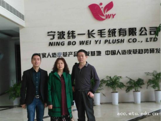 宁波纬一长毛绒股份有限公司是国家纺织产品开发中心授予“国家人造皮草产品开发基地”、“中国人造皮草流行趋势研究中心”。“ 纬一”生产的人造毛绒可媲美真毛系列产品,日生产量达4万余米,每年推出30余种适销对路的人造毛绒新产品,引领中国人造毛绒始终走在世界前列。纬一公司坚持走品牌化道路,为高端人造皮草面料设立定制品牌——MACINFUR,并以其时尚性、高仿真性和绿色环保理念受到高端时尚人群的认同。产品已被香奈儿、古驰、路易威登等国际一线品牌选用,“享受皮草、拒绝伤害”的口号更传递出纬一的企业责任。随着人们环保意识的提高,该企业具有较好的发展前景,他们也表达了对纺织行业专业人才的需求,经过协商双方签署了合作协议。
