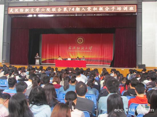 3月20日下午,会计学院、管理学院、外国语学院、现代纺织学院、纺织与工程学院以及高职学院六个学院按学校党委组织部的统一安排,在大活演播厅内联合开展第74届入党积极分子第一次培训班课程。会计学院党委书记樊敏、副书记熊敏,管理学院分党委副书记汪仕辉,高职学院分党委副书记曾文静出席本次培训班。