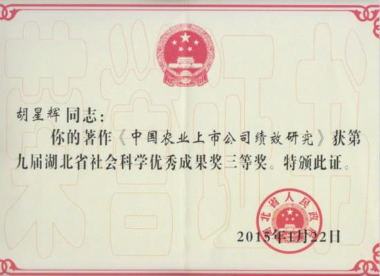 3.首次荣获湖北省社会科学优秀成果三等奖1项、武汉市社会科学优秀成果三等奖2项及优秀奖1项,科学研究取得新突破。