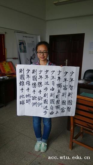 会计11405班的张静立同学擅长书法,曾多次作为我院代表展示书法功底。此次她书写了《少年中国说》纪念五四青年节,用传统的毛笔重新演绎鼓舞一代中国青年的文学经典。张雅欣同学则采用了另外一种方式——国画,表达对中国美好未来的期待。一簇牡丹绽放于纸上,喻示未来的中国也将是朝气蓬勃、璀璨夺目。还有不少同学在寝室里观看了关于五四青年节的纪念视频,缅怀五四运动中的青年革命家,努力将五四精神融入现代生活,成为爱国、进步的当代青年。