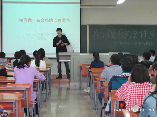 赵老师首先向同学们介绍了心理委员的重要性和职责所在,着重介绍了校内及国内心理咨询的方式和途径。他说心理委员不仅要宣传好心理知识、组织好班级活动、帮助同学们排解问题,同时需要注意在日常生活中有心发现同学们潜在的心理问题并给予帮助,减轻抑郁症、精神病、强迫症的发生几率。讲座中赵老师反复强调:“有心理问题不可怕,当有问题出现,应当能找到途径解决。点滴心理协助,可能改变一个人。心理苦恼人人都会有,程度不一,若自身不能解决,则需外界协助。”
